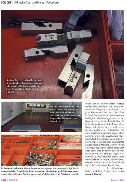 werden lässt. Holden: „Das sind die wesentlichen Teile für gut 100 Pistolen… na ja, es können auch 150 sein…“ Aha! Just in Time? Das funktioniert auch in Corona bedingten Materialengpässen prima.